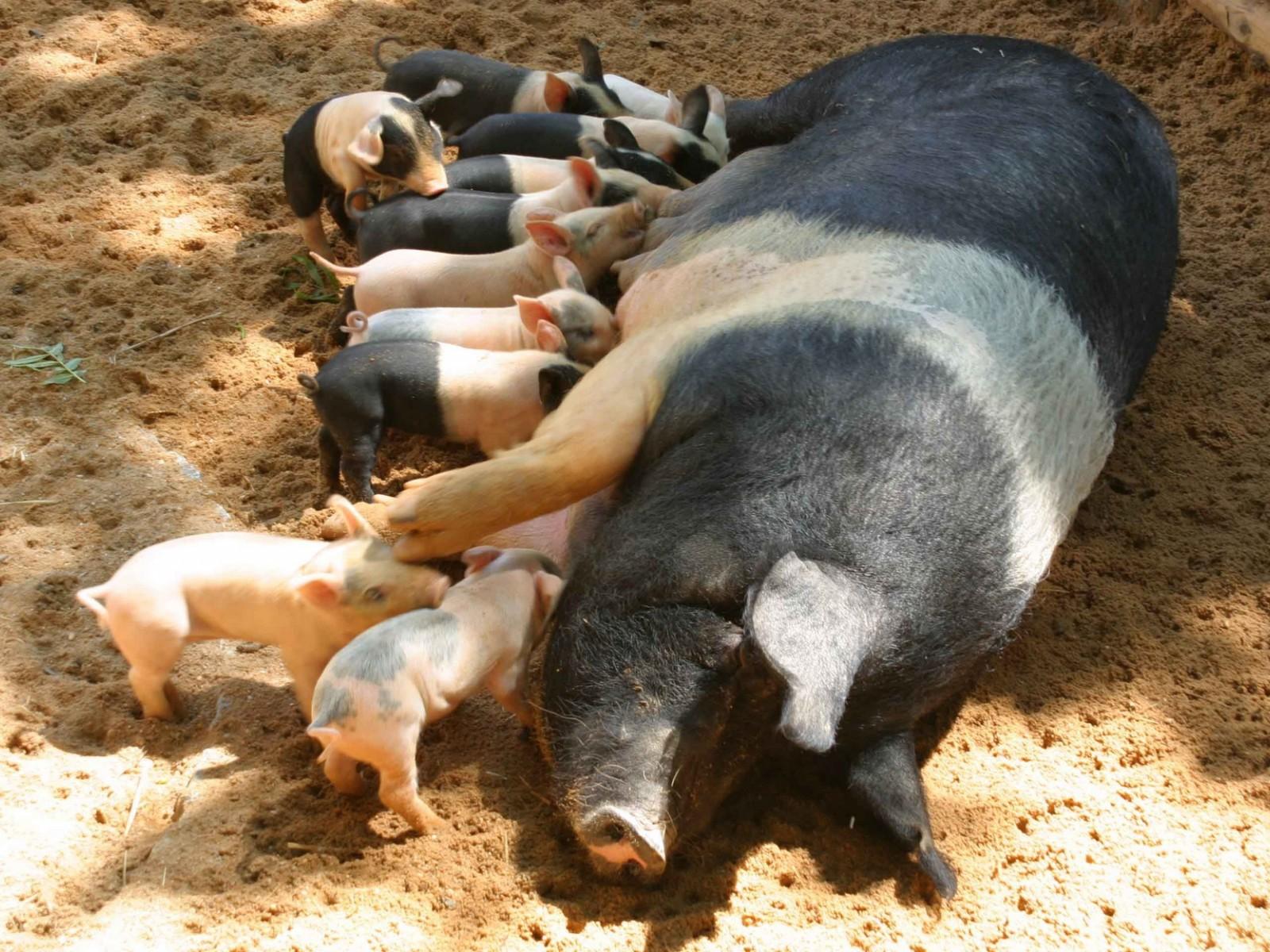 Обои Свинья с поросятами