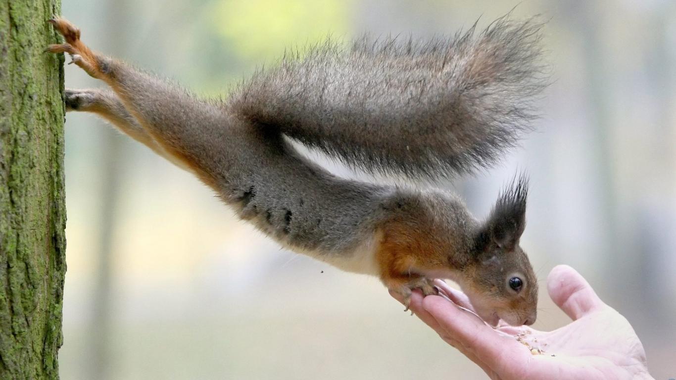 Обои Белка ест с руки