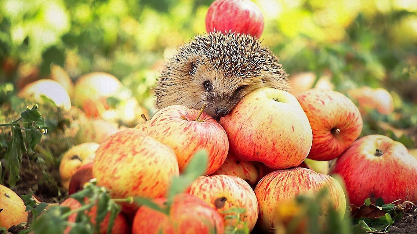 Обои Ёжик на яблоках