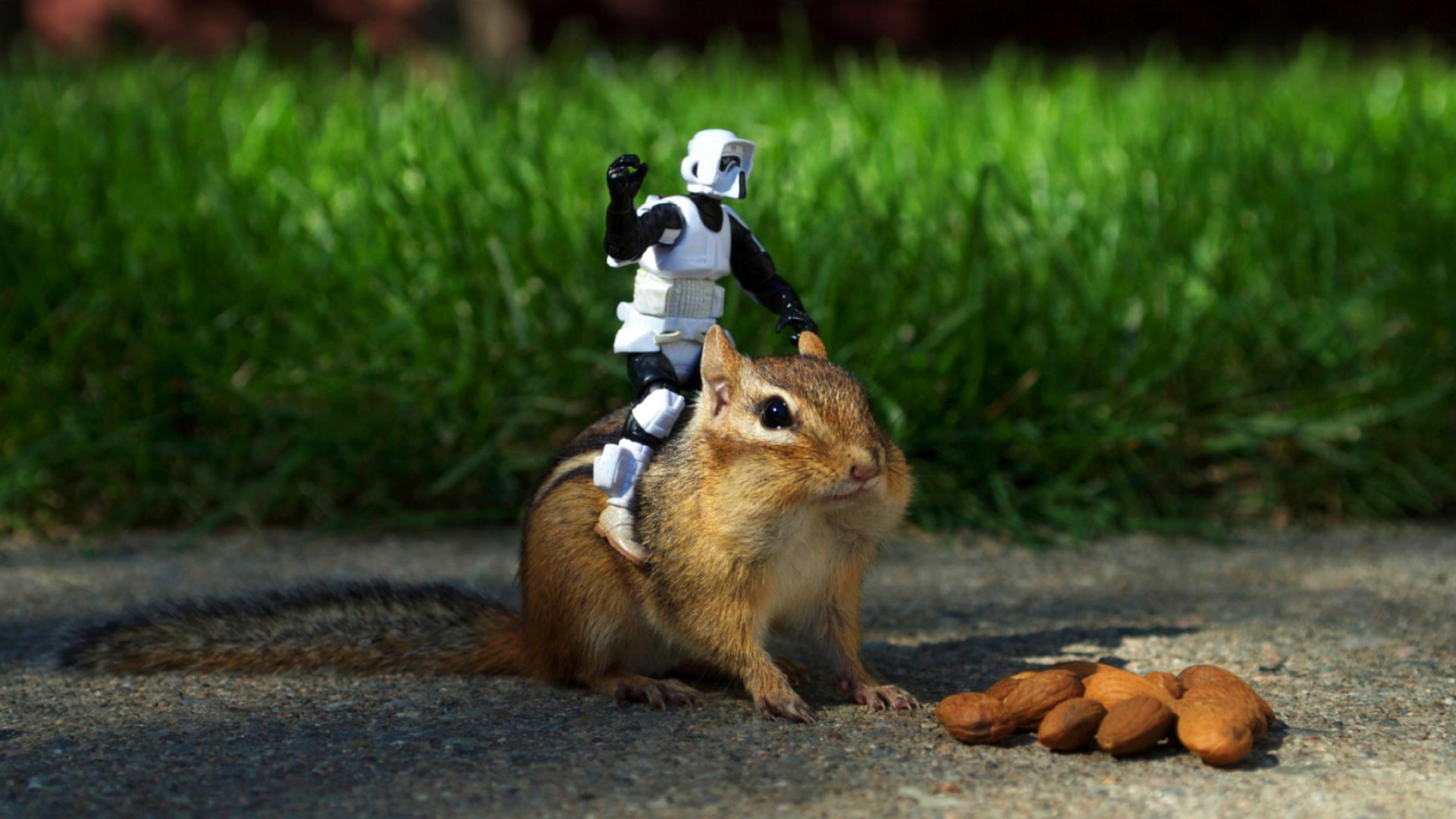 Обои Робот верхом на бурундуке