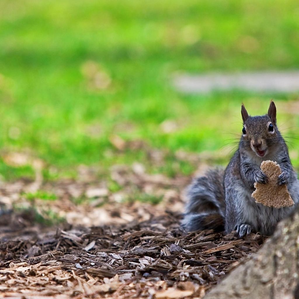 Обои Белка ест хлеб