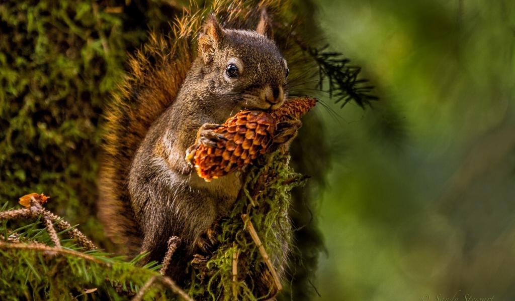 Обои Зелень, Белка, Шишка, Сосна