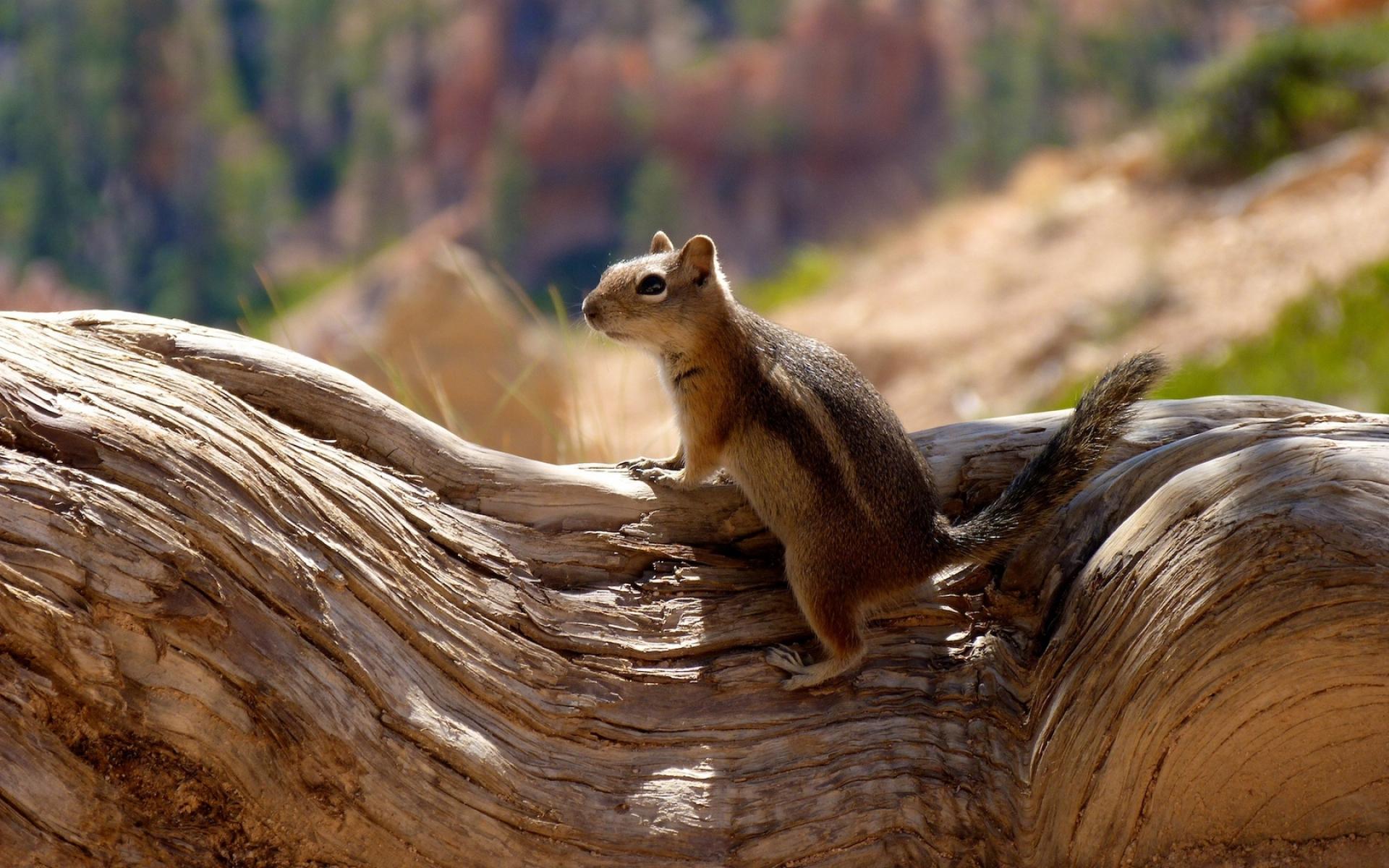 Обои Белка на бревне