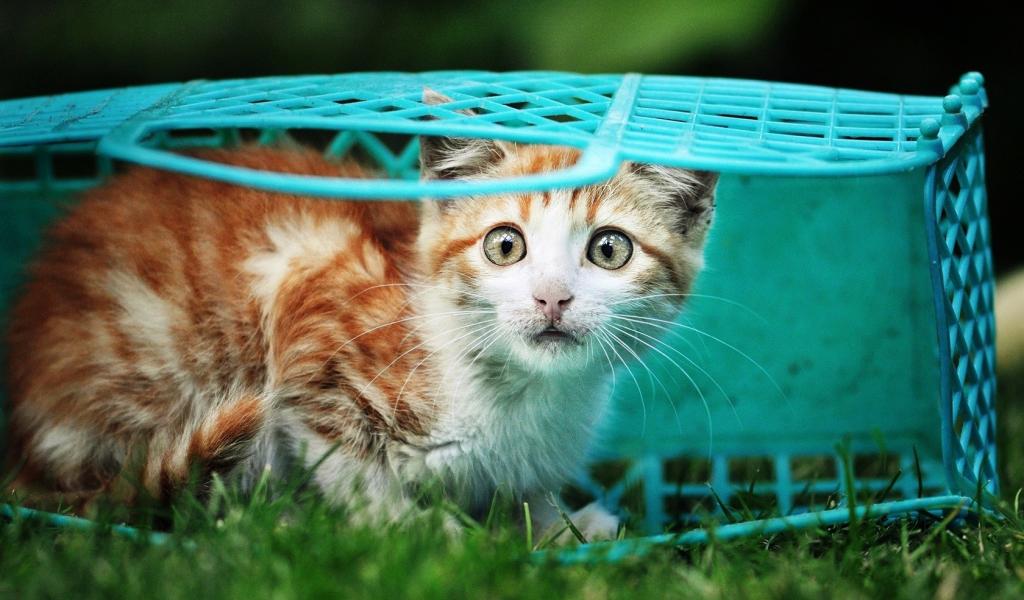 Обои Котенок в голубой корзине