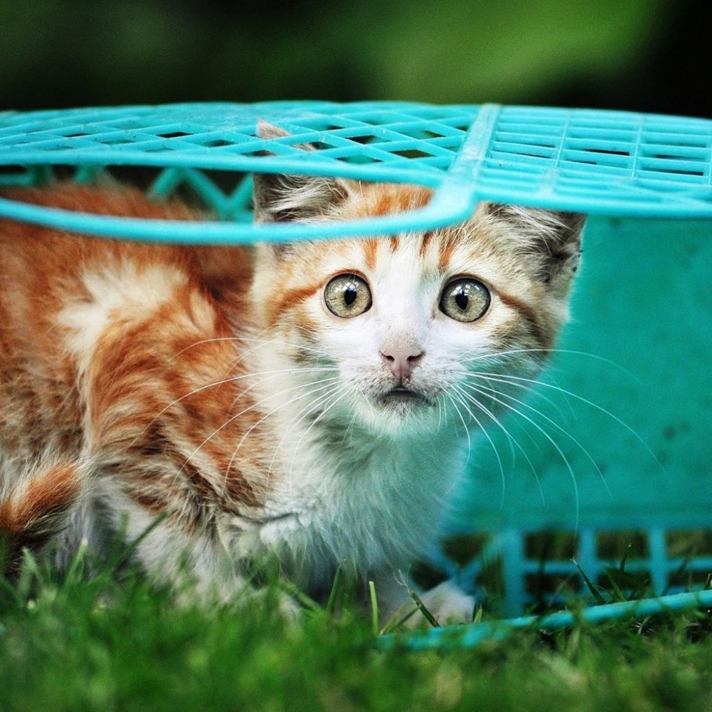 Обои Котенок в голубой корзине
