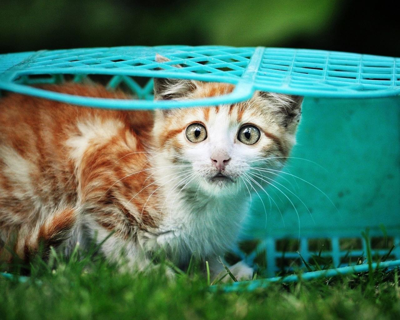 Обои Котенок в голубой корзине