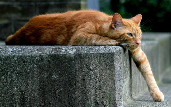 Обои Рыжий кот опустил лапу вниз