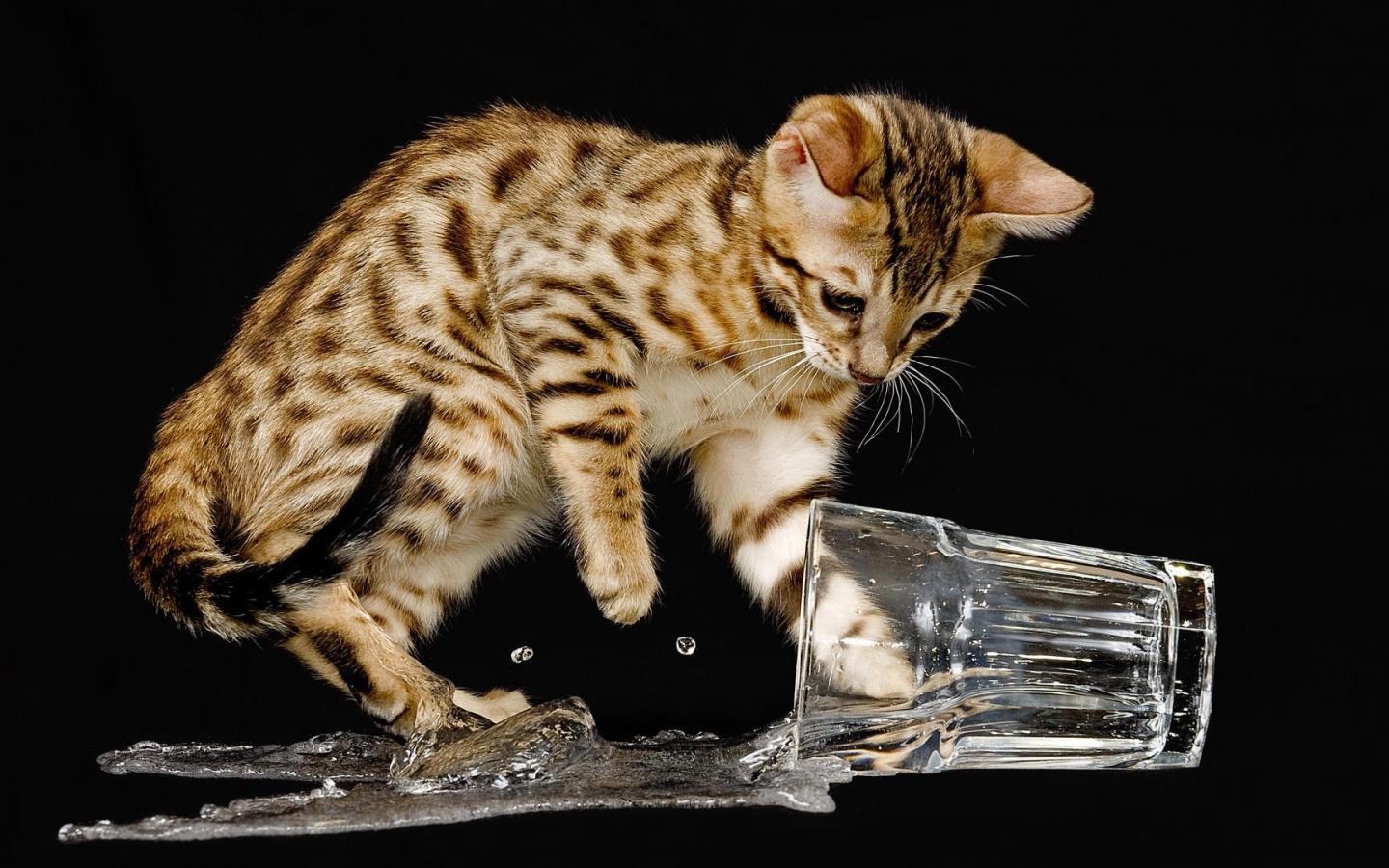 Обои Котенок опрокинул стакан с водой
