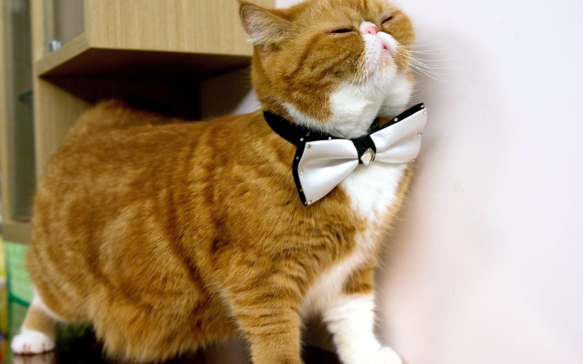 Обои Белая бабочка на рыжем коте