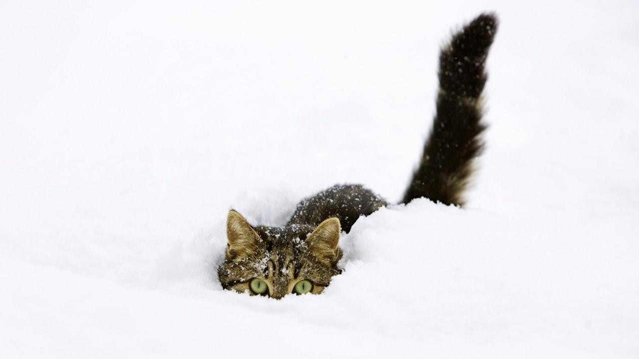 Обои Кот сидит в снегу