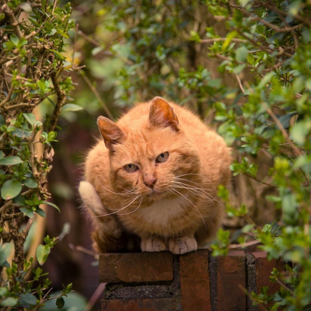 Обои Рыжий кот на каменном заборе