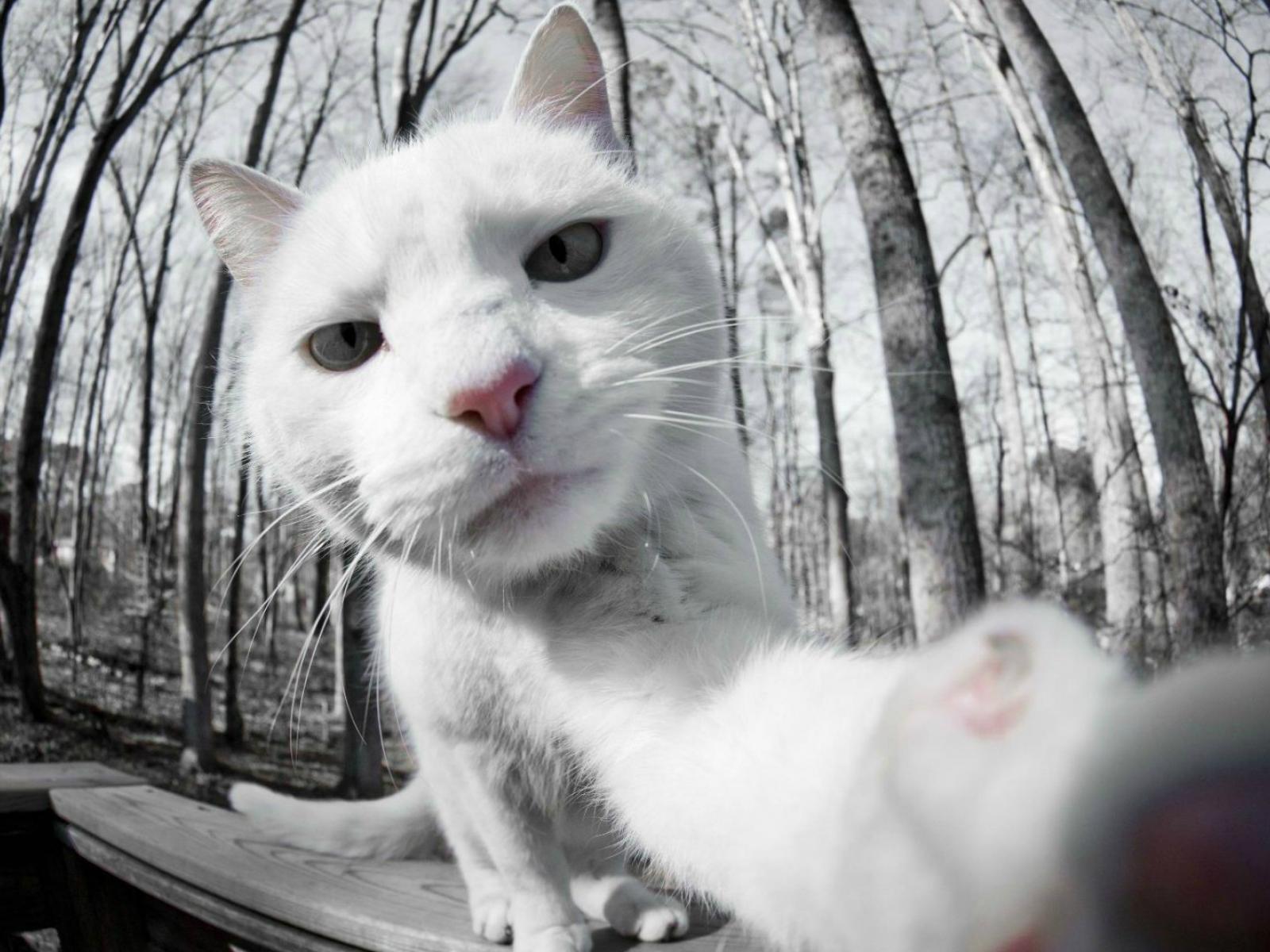 Обои Селфи белого кота
