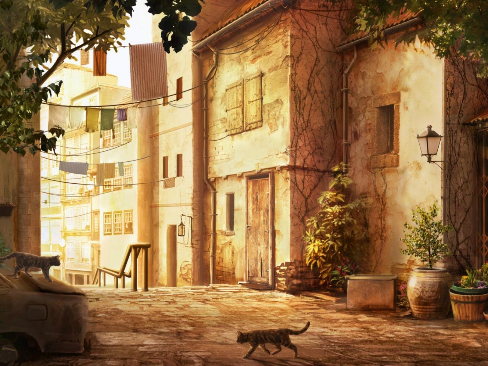 Обои Кошка переходит дорогу