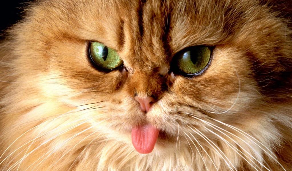 Обои Пушистый кот показал язык