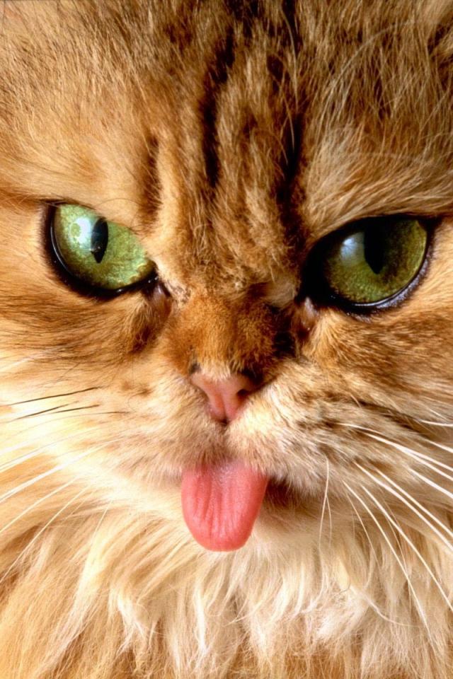Обои Пушистый кот показал язык