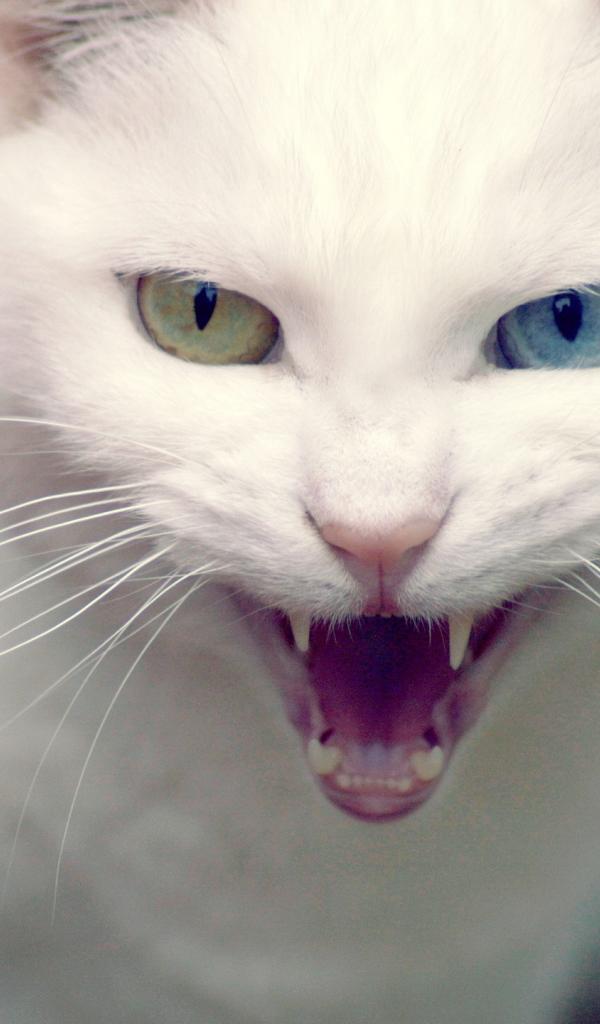 Обои Белый кот показывает клыки