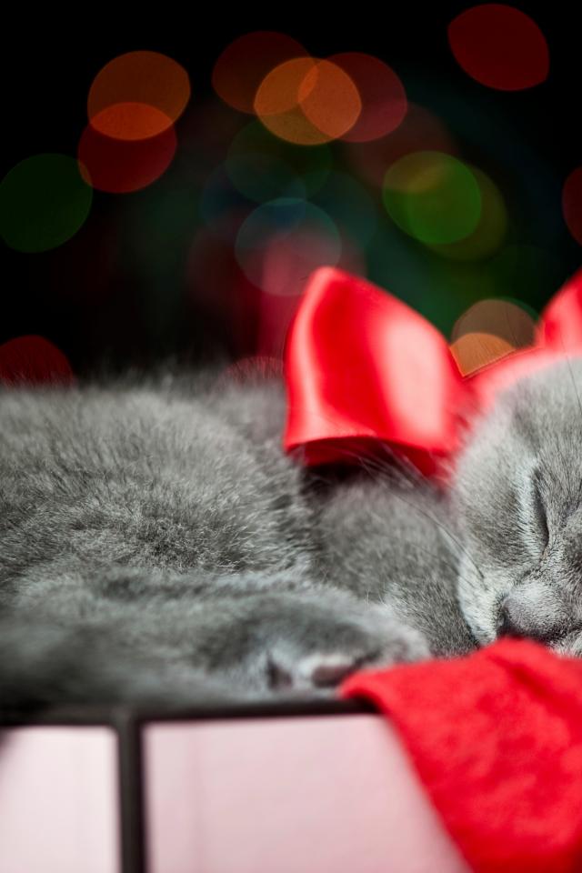 Обои Котенок с красным бантом