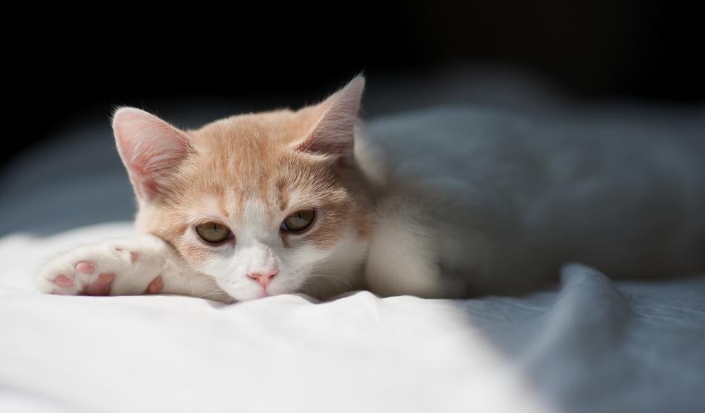 Обои Котенок на белой постели