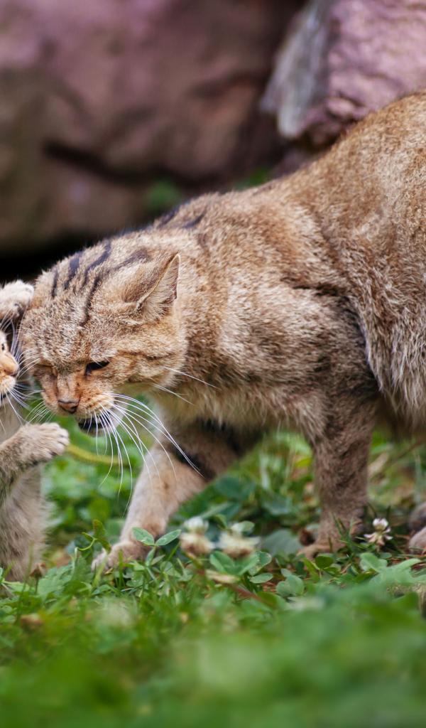 Обои Дикая кошка с котенком