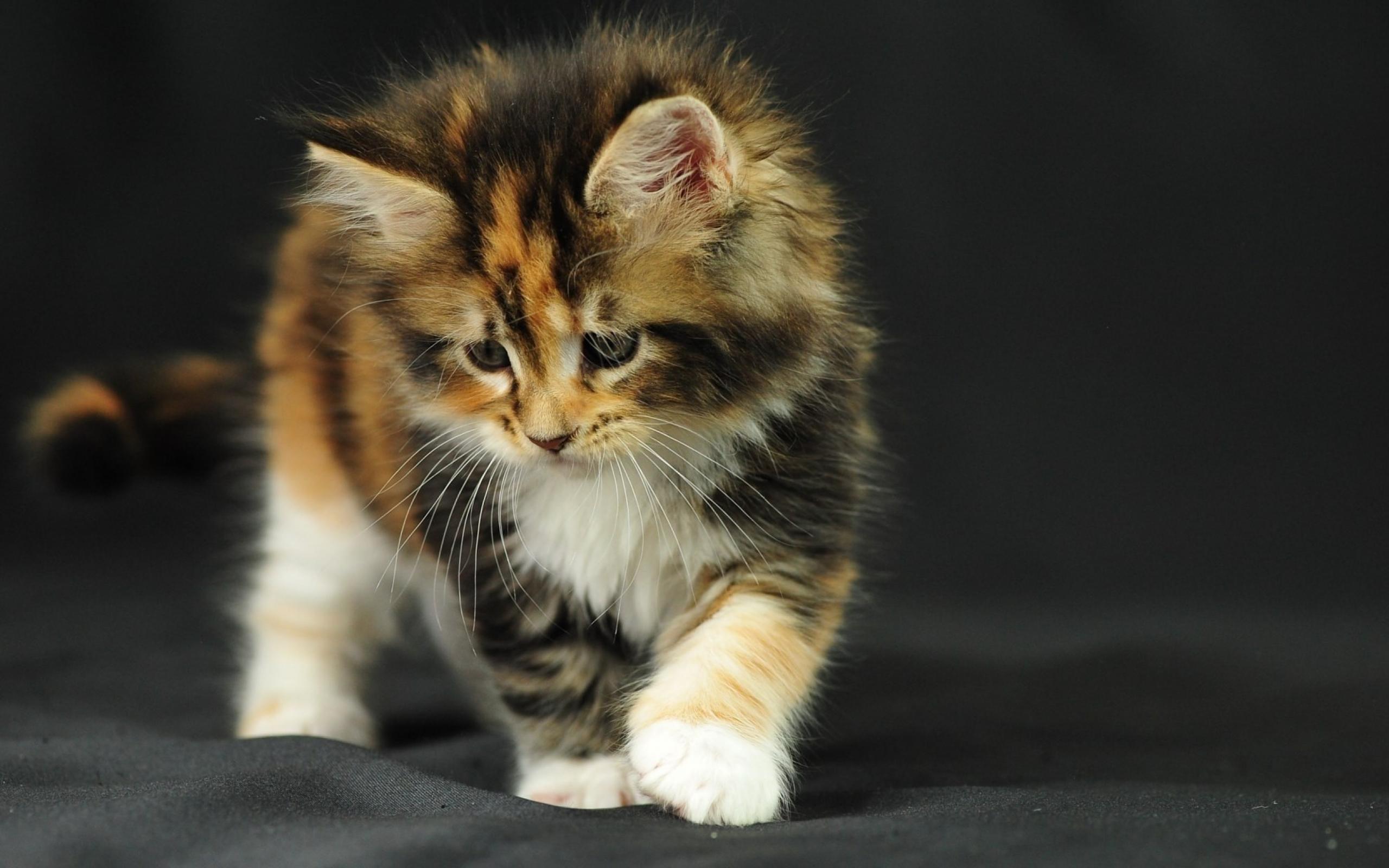 Обои Котенок на черной ткани