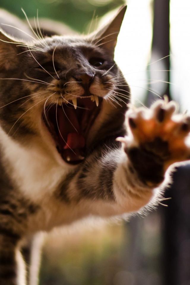 Обои Кот с открытым ртом