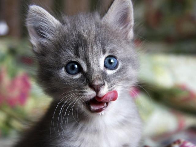 Обои Котенок облизывается
