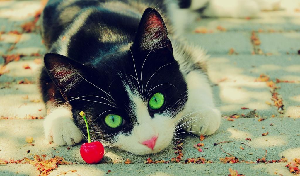 Обои Кот с вишней