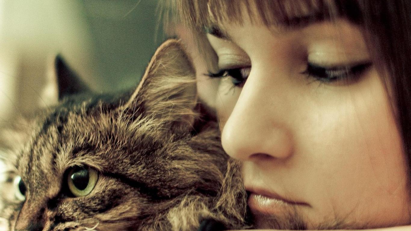 Обои Девочка с кошкой