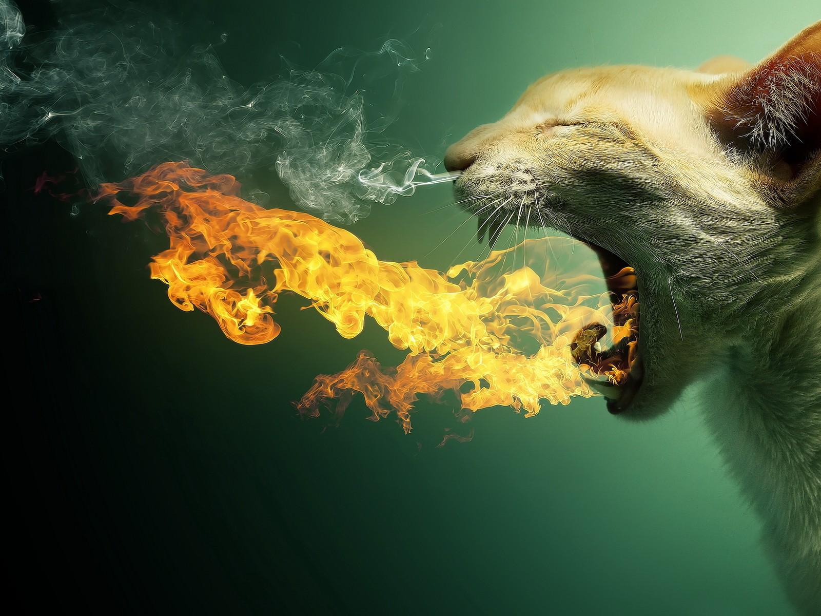 Обои Кот изрыгающий огонь