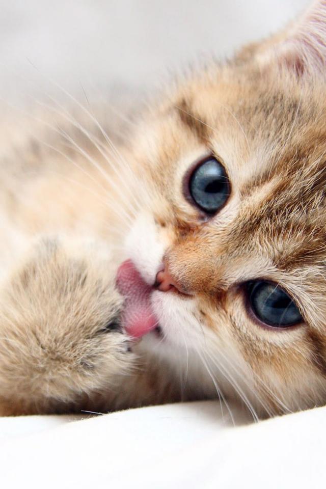 Обои Котенок лижет лапу