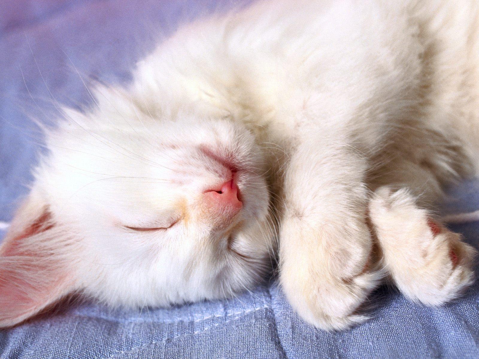 Обои Маленький белый кот видит десятый сон