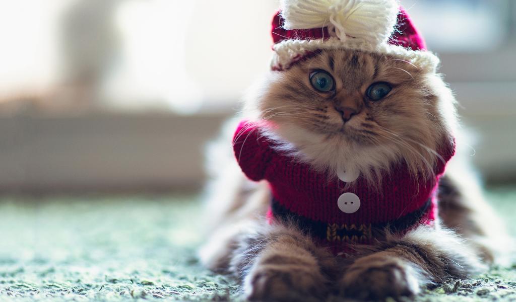 Обои Смешной пушистый кот в наряде