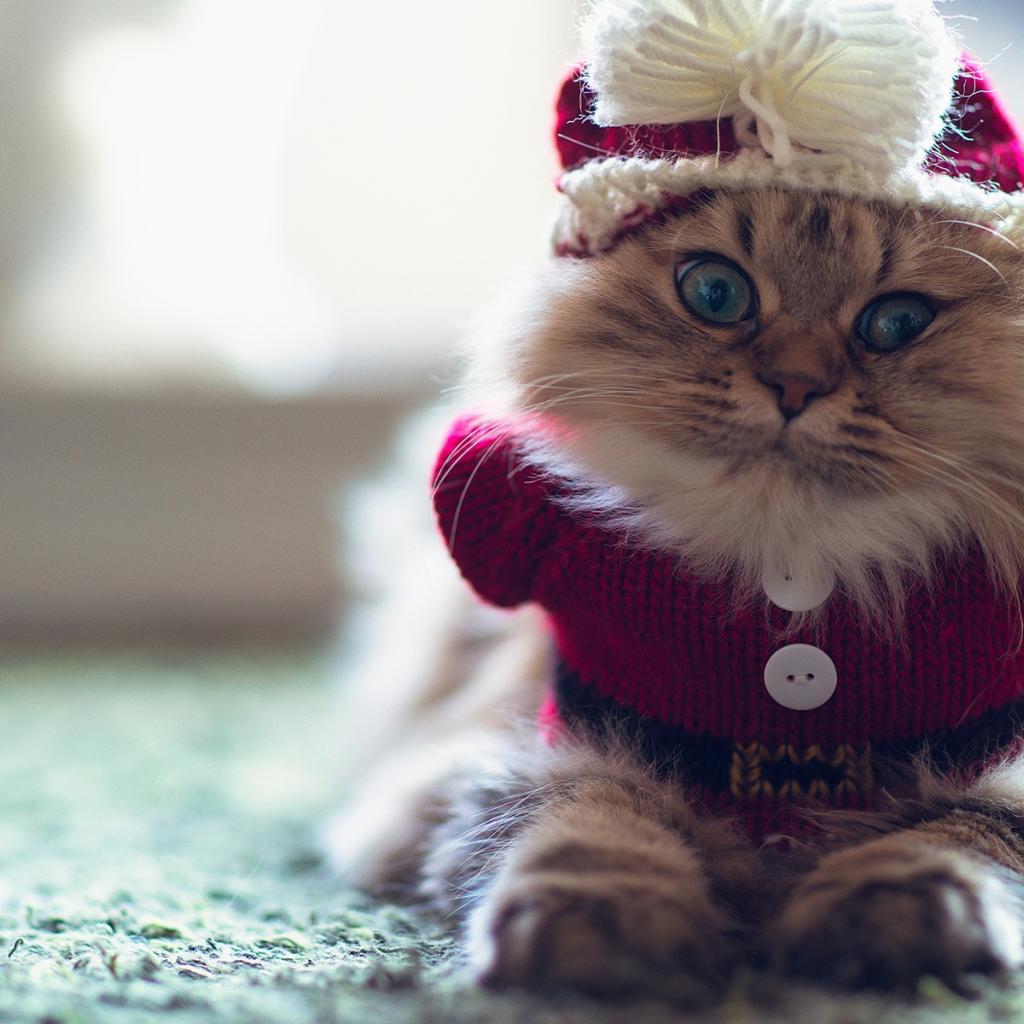 Обои Смешной пушистый кот в наряде
