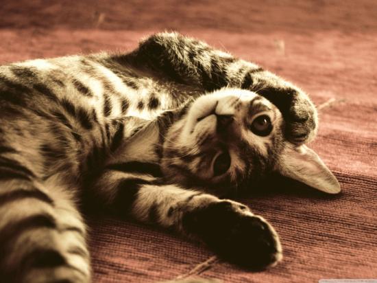 Обои Полосатый смешной кот развалился
