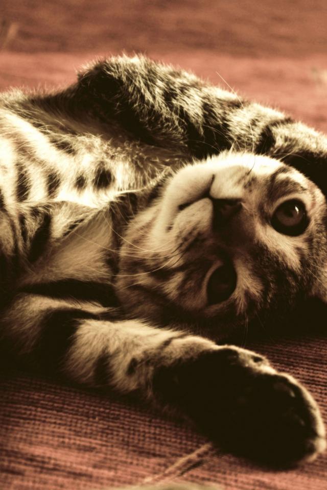 Обои Полосатый смешной кот развалился