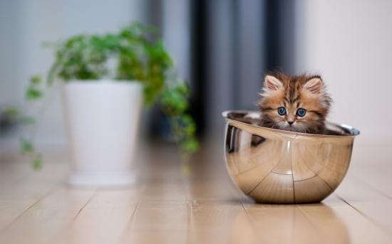 Обои Смешной котёнок в миске
