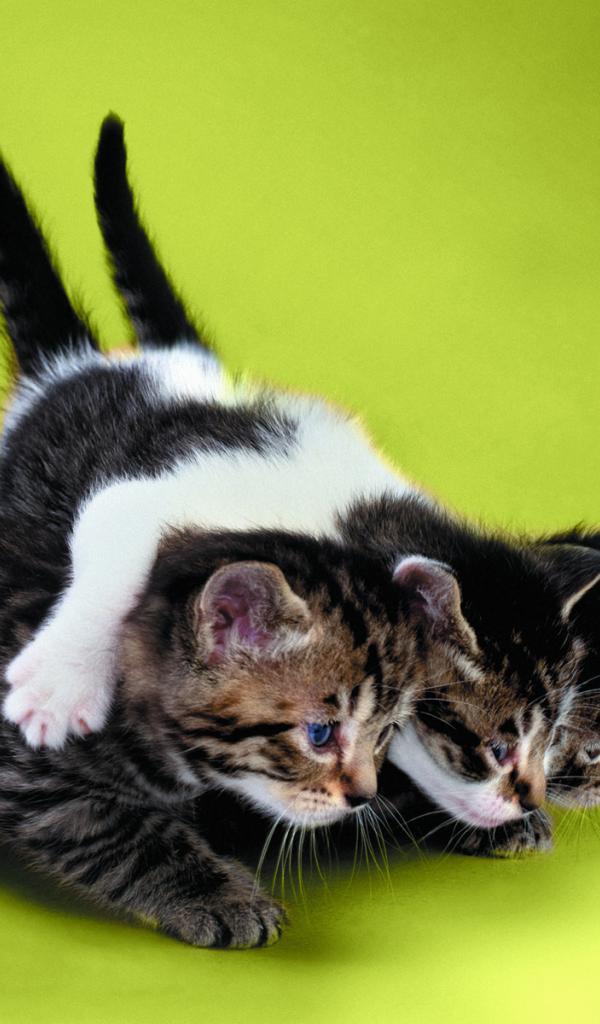 Обои Два котёнка тащат третьего