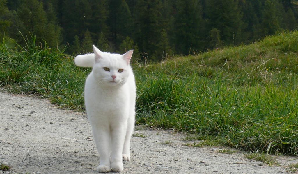 Обои Красивый белый кот гуляет по холмам