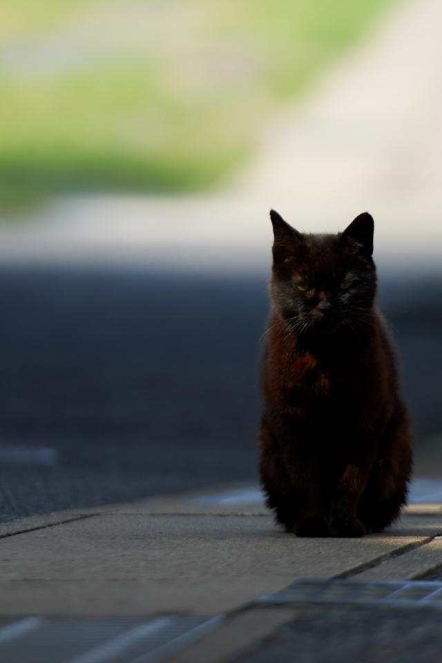 Обои Чёрный кот гипнотизирует фотографа