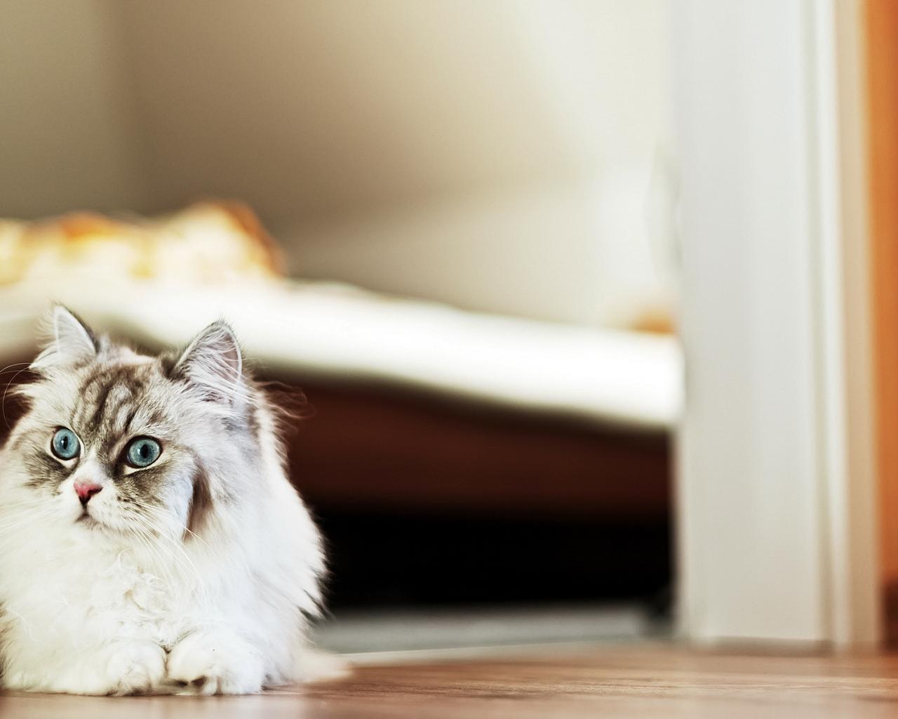 Обои Пушистый красивый кот удивлённо смотрит