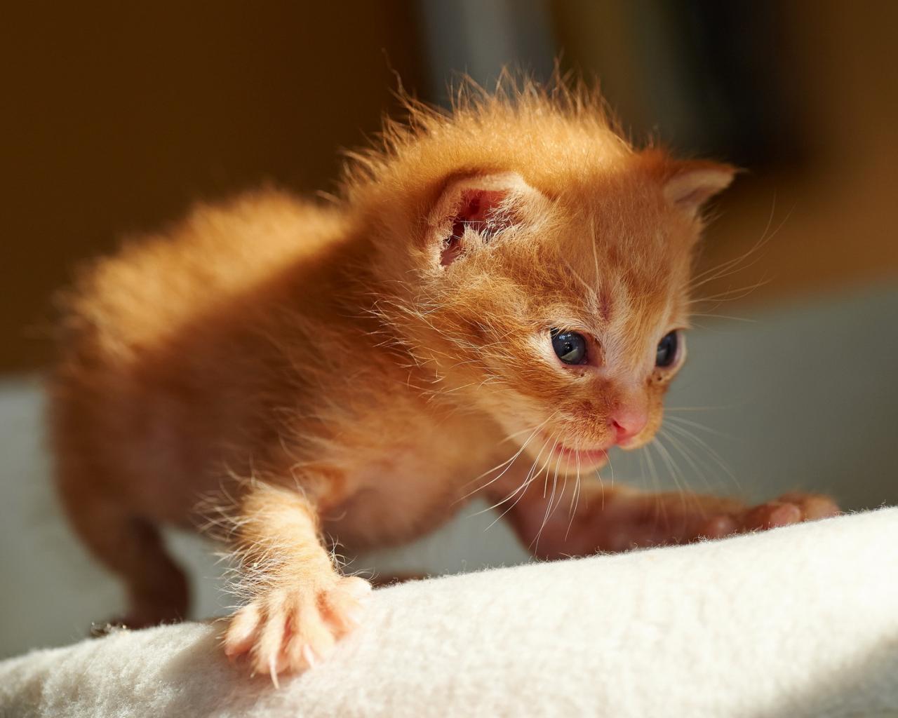 Обои Первые шаги рыжего котёнка