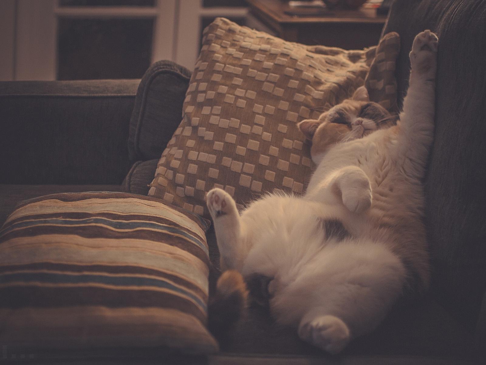 Обои Девушка в джинсах и белом топике лежит на подушках в кровати