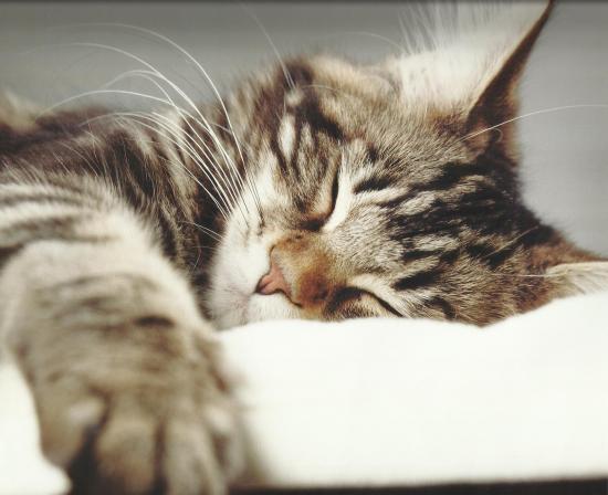 Обои Маленький шотландский вислоухий кот спит в новогодней шапке