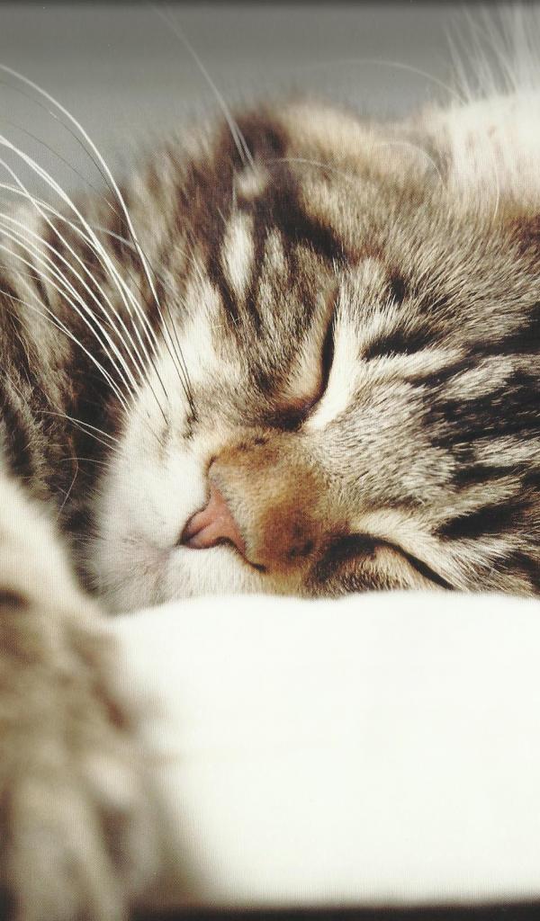 Обои Маленький шотландский вислоухий кот спит в новогодней шапке