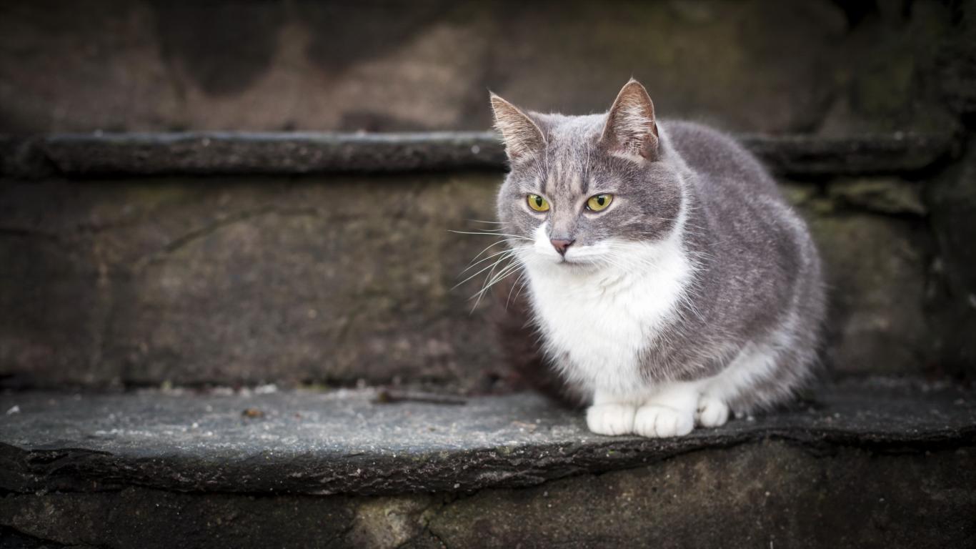 Обои Красивый кот на ступеньках
