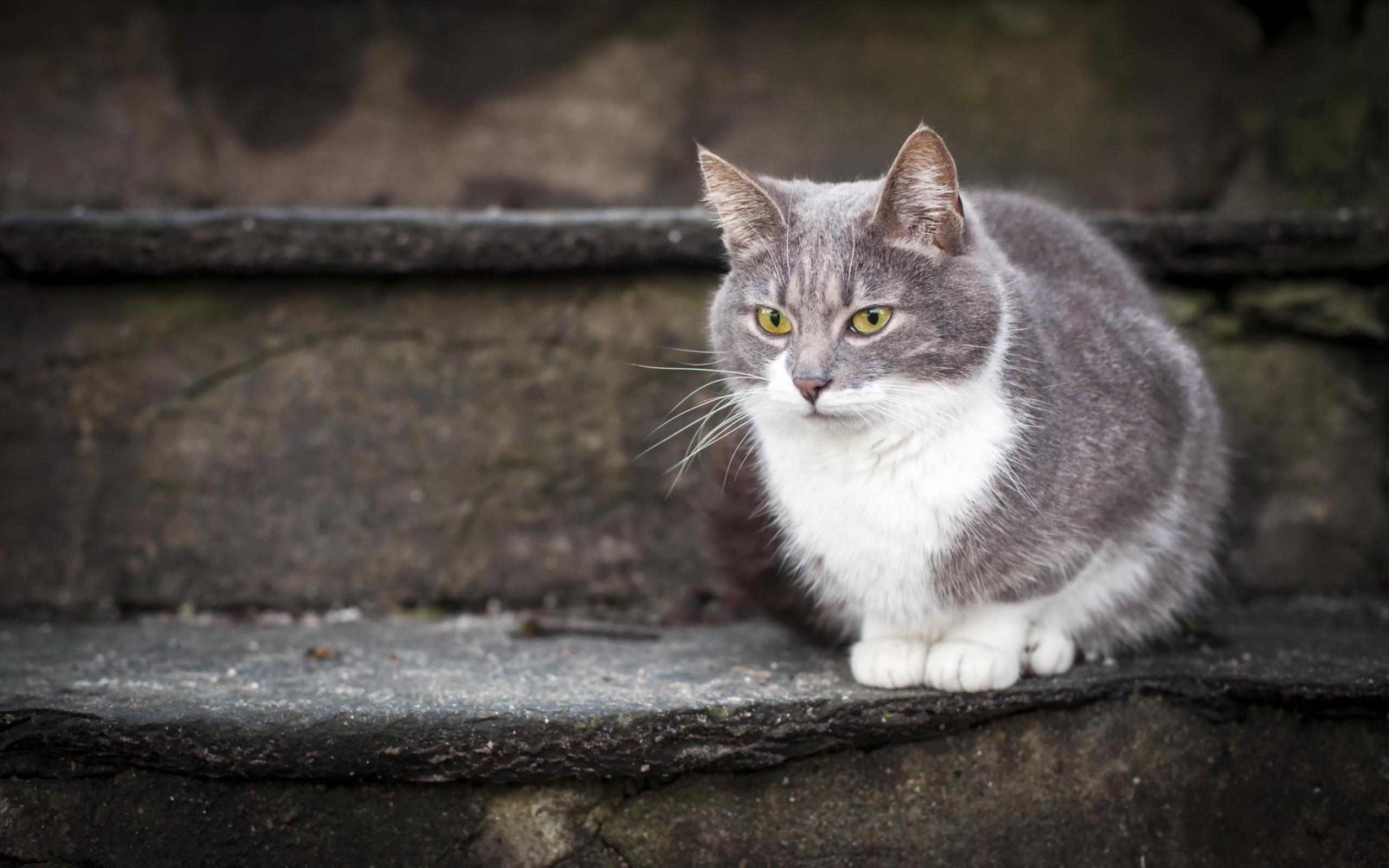 Обои Красивый кот на ступеньках