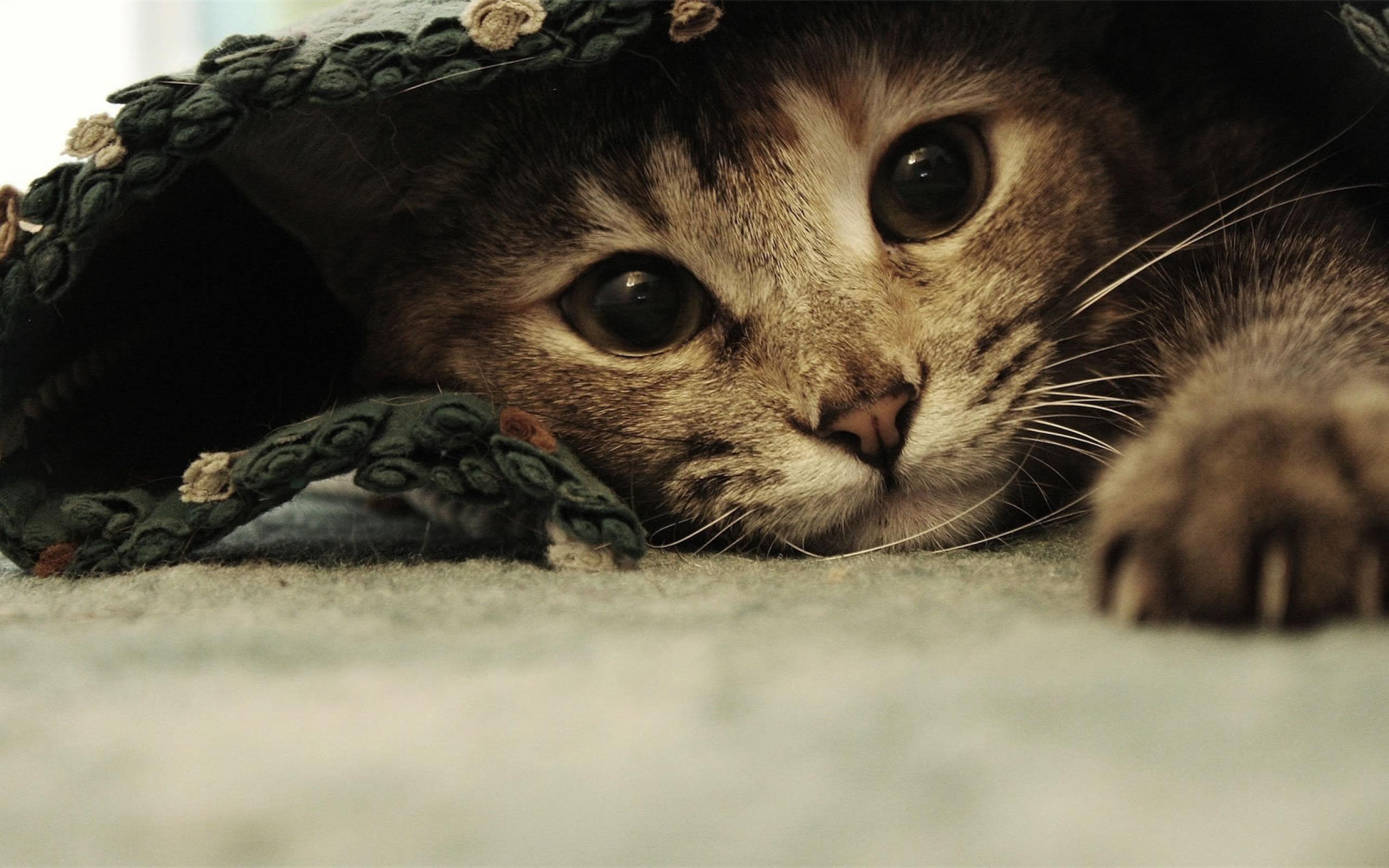 Обои Смешной красивый кот под ковриком