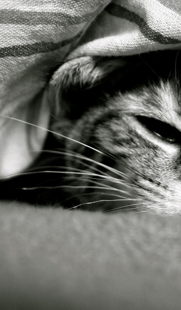Обои Кот под одеялом