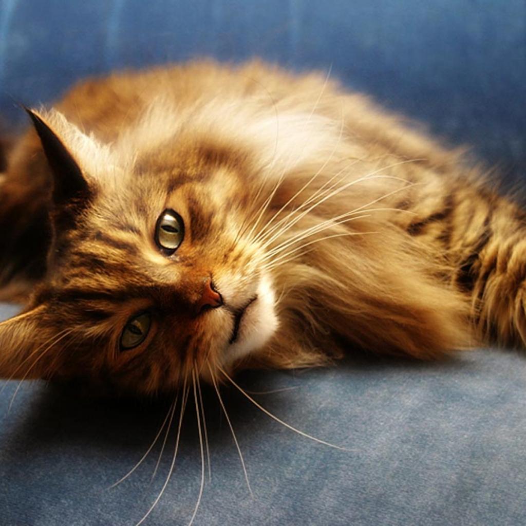 Обои Рыжий кот мейн-кун на синем диване
