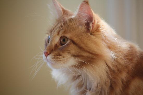 Обои Рыжий кот мейн-кун кого-то увидел